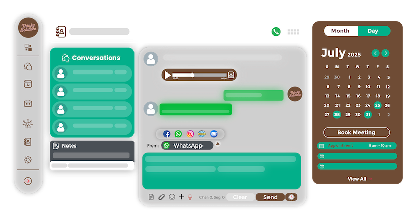 Monitor conversations, bookings, performance, and customer history from a clean, centralized dashboard designed for speed and simplicity.